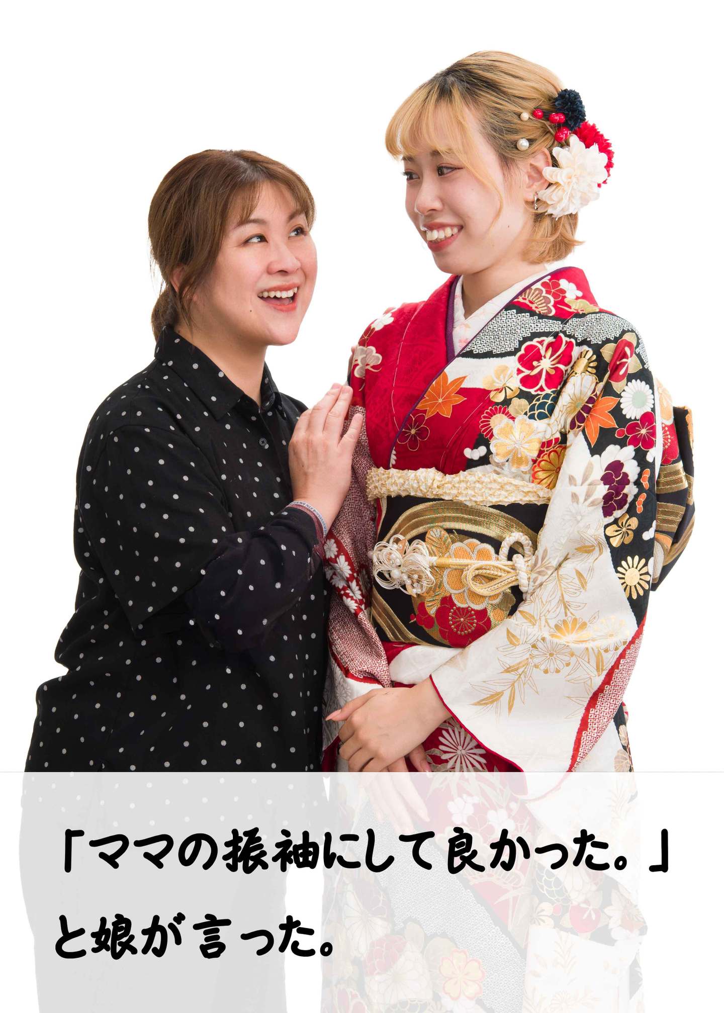 小物の魔法で、お母様の振袖が「お嬢様の最新スタイル」に。