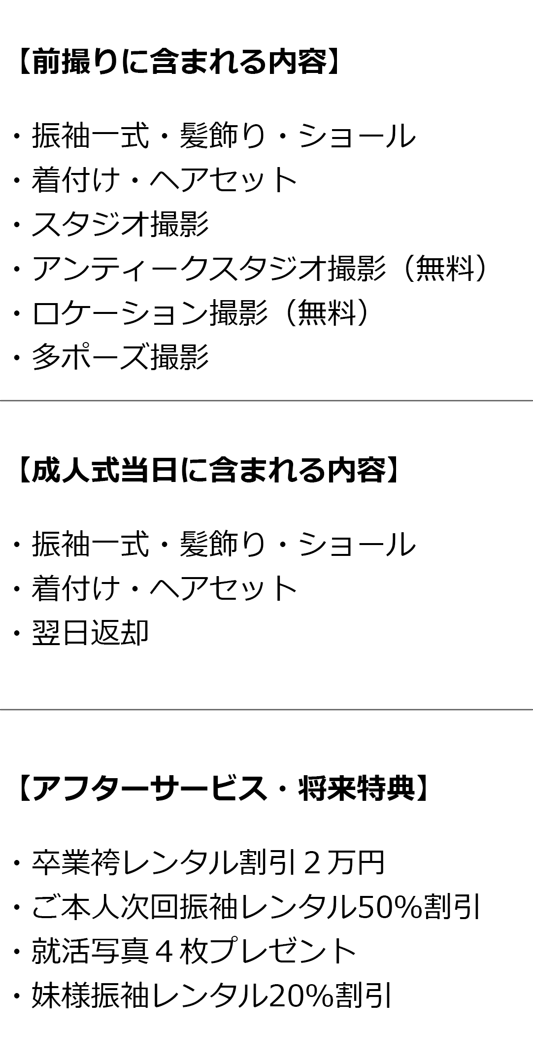 ④ 振袖レンタル価格に含まれる内容