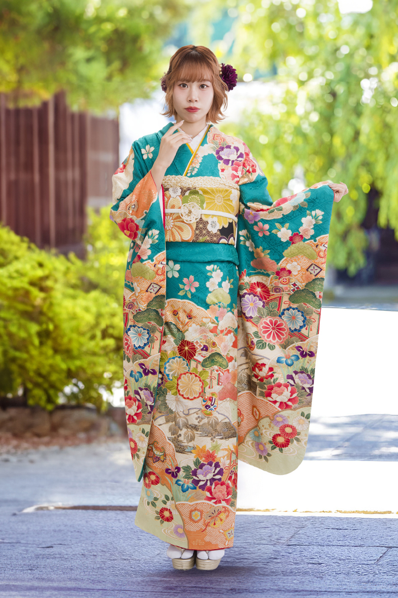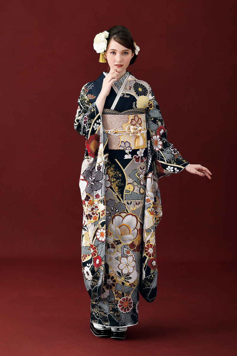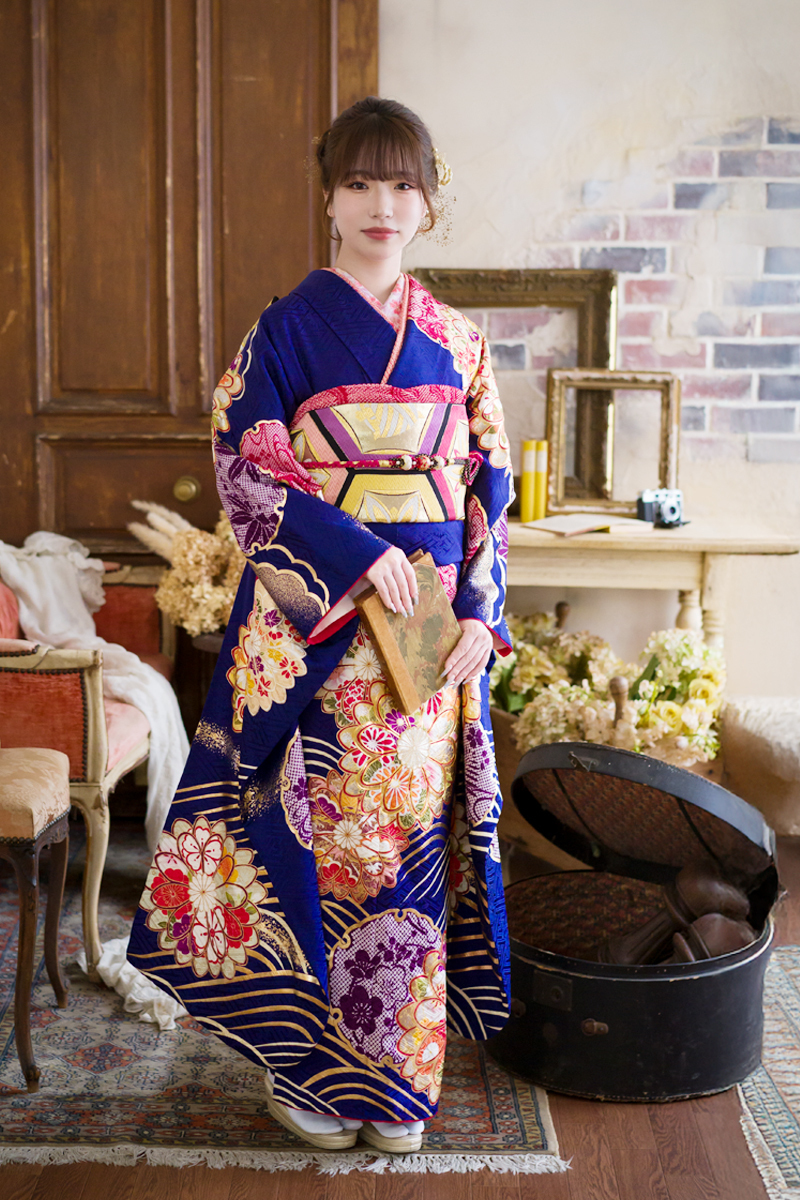 青・紺色振袖:凛とした気品、知的な大人っぽさ