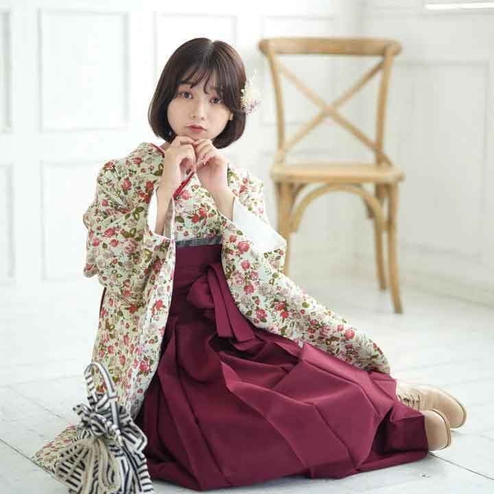 2尺袖着物、袴、帯、肌着足袋、草履、巾着がセット料金に全て含まれています。新作は+1万円です。遠方のお持ち出しの為、レンタル期間は1週間に延長されます。